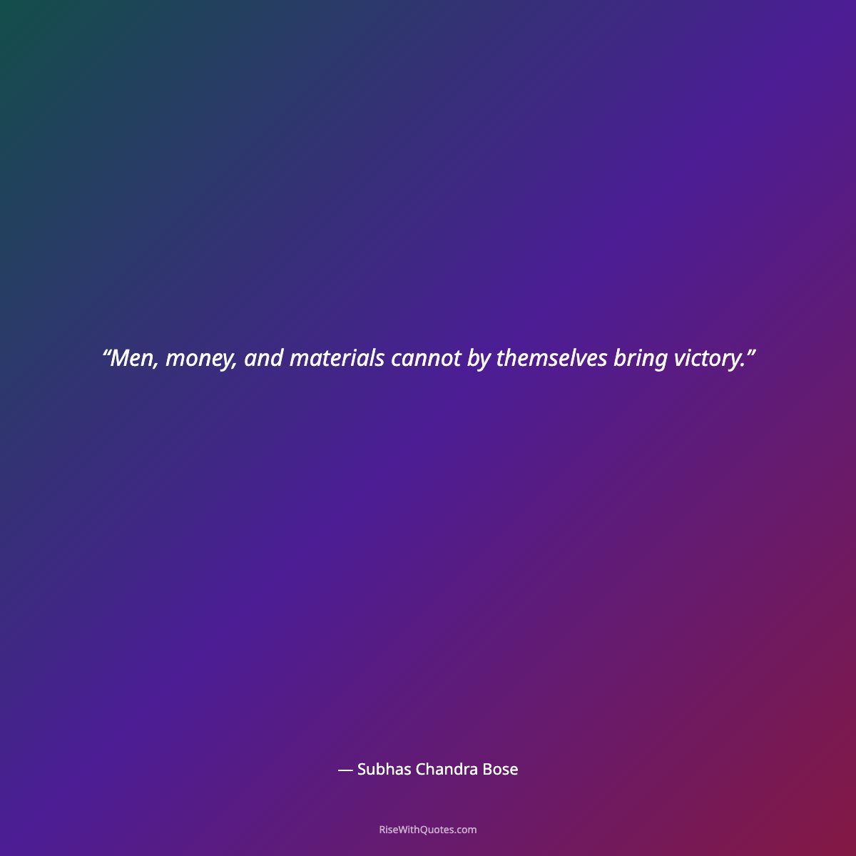 “Men, money, and materials cannot by themselves bring victory.”