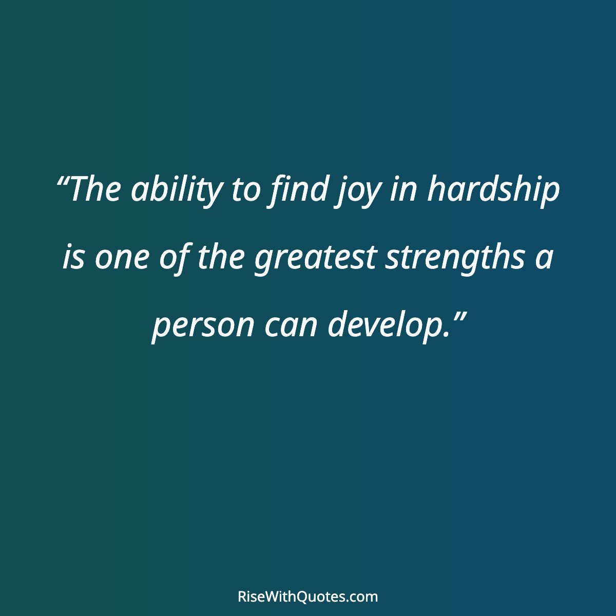 “The ability to find joy in hardship is one of the greatest strengths a person can develop.”