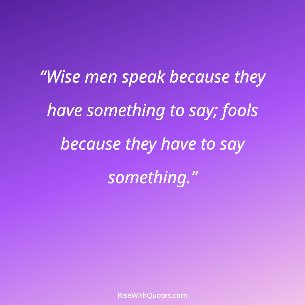 “Wise men speak because they have something to say; fools because they have to say something.”