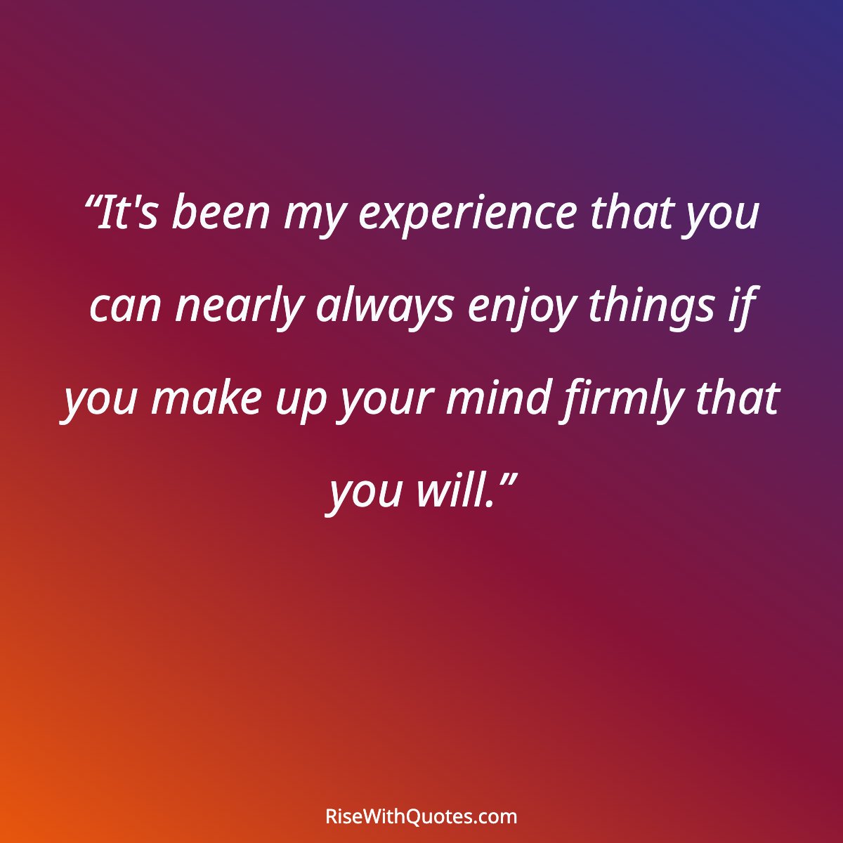 “It's been my experience that you can nearly always enjoy things if you make up your mind firmly that you will.”