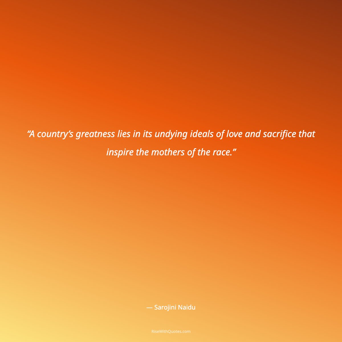 “A country’s greatness lies in its undying ideals of love and sacrifice that inspire the mothers of the race.”