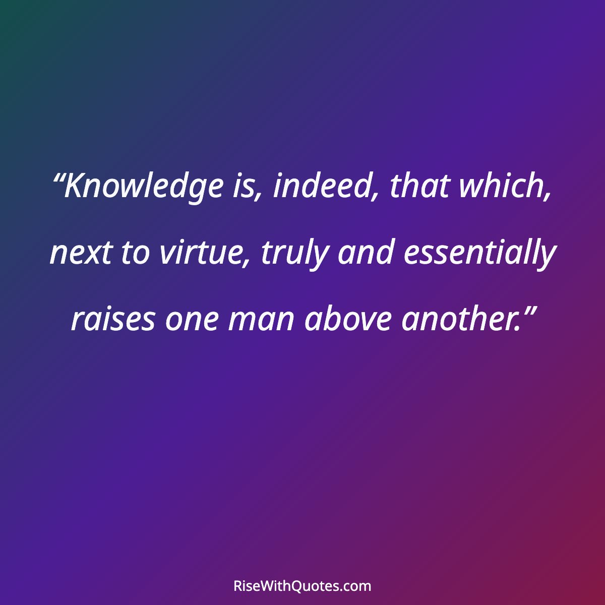 “Knowledge is, indeed, that which, next to virtue, truly and essentially raises one man above another.”