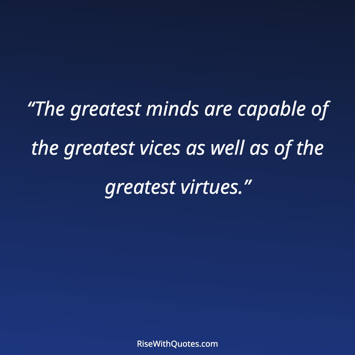 “The greatest minds are capable of the greatest vices as well as of the greatest virtues.”