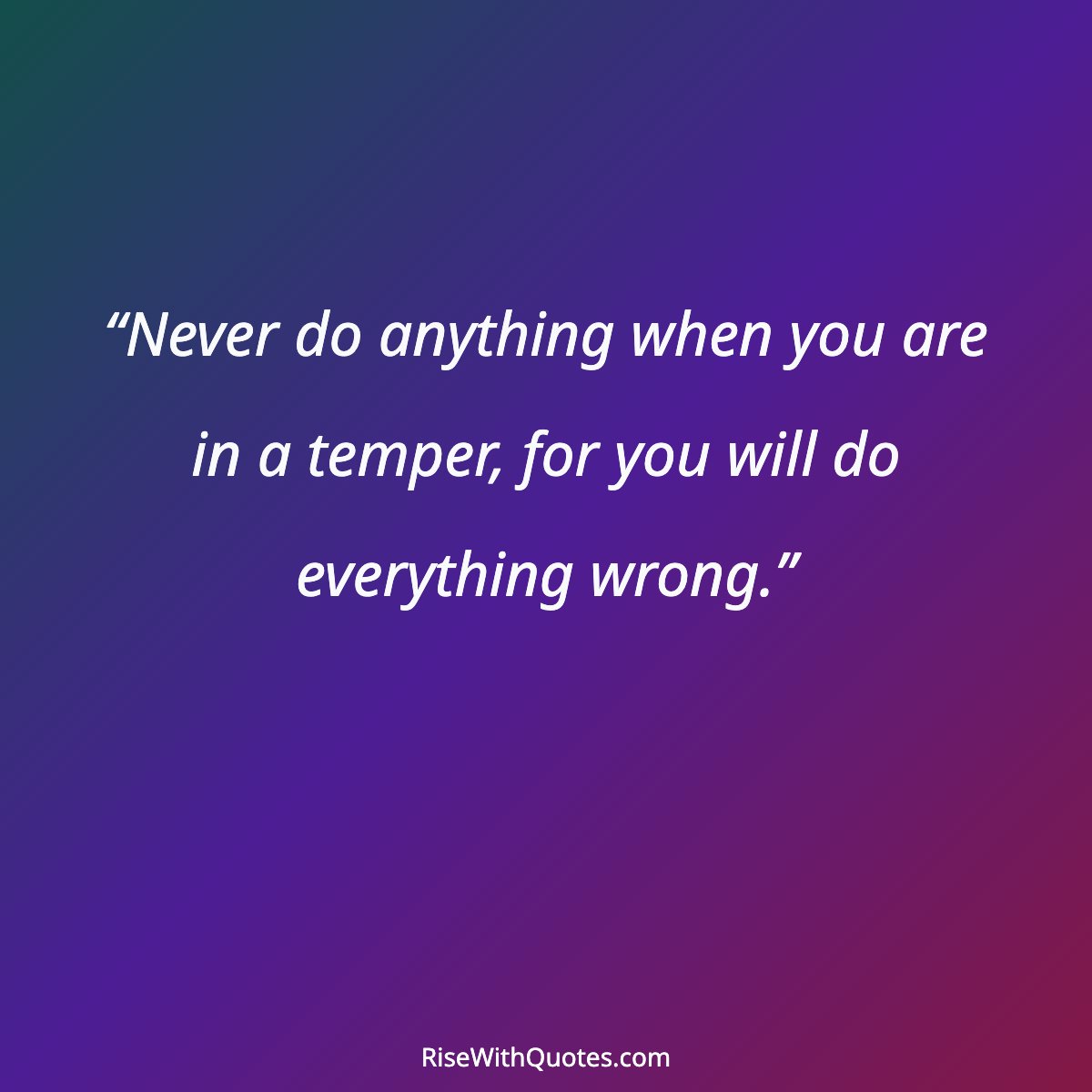 “Never do anything when you are in a temper, for you will do everything wrong.”