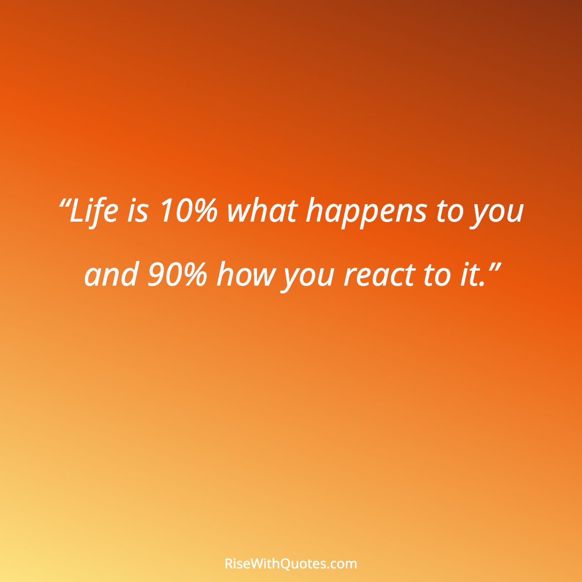 Meaning: Events in life are often beyond your control, but your response to them defines your experience. This quote emphasizes the importance of attitude and mindset in shaping outcomes, encouraging personal responsibility and emotional control. -