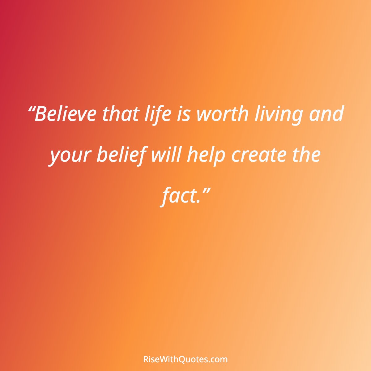 “Be not afraid of life. Believe that life is worth living, and your belief will help create the fact.”