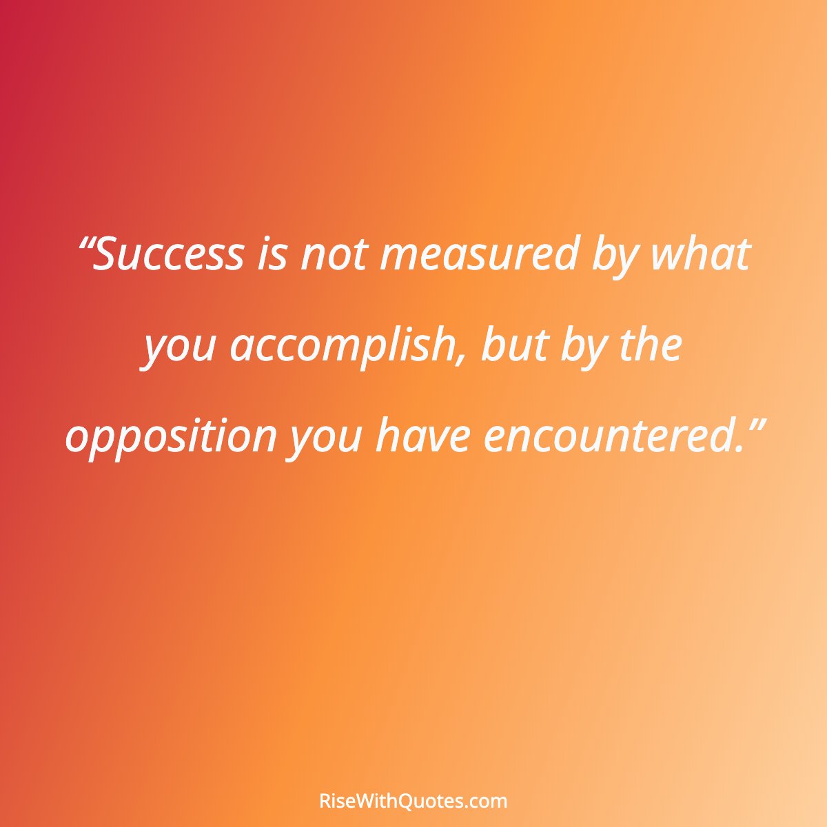 “Success is not measured by what you accomplish, but by the opposition you have encountered.”