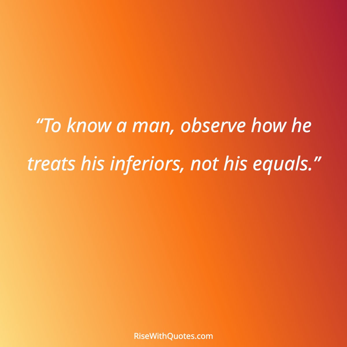 “To know a man, observe how he treats his inferiors, not his equals.”