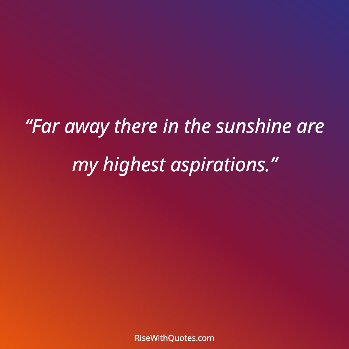 “Far away there in the sunshine are my highest aspirations.”