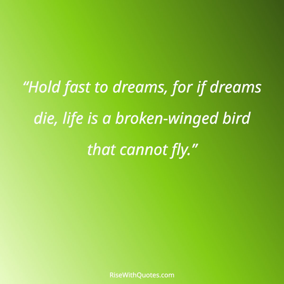 “Hold fast to dreams, for if dreams die, life is a broken-winged bird that cannot fly.”