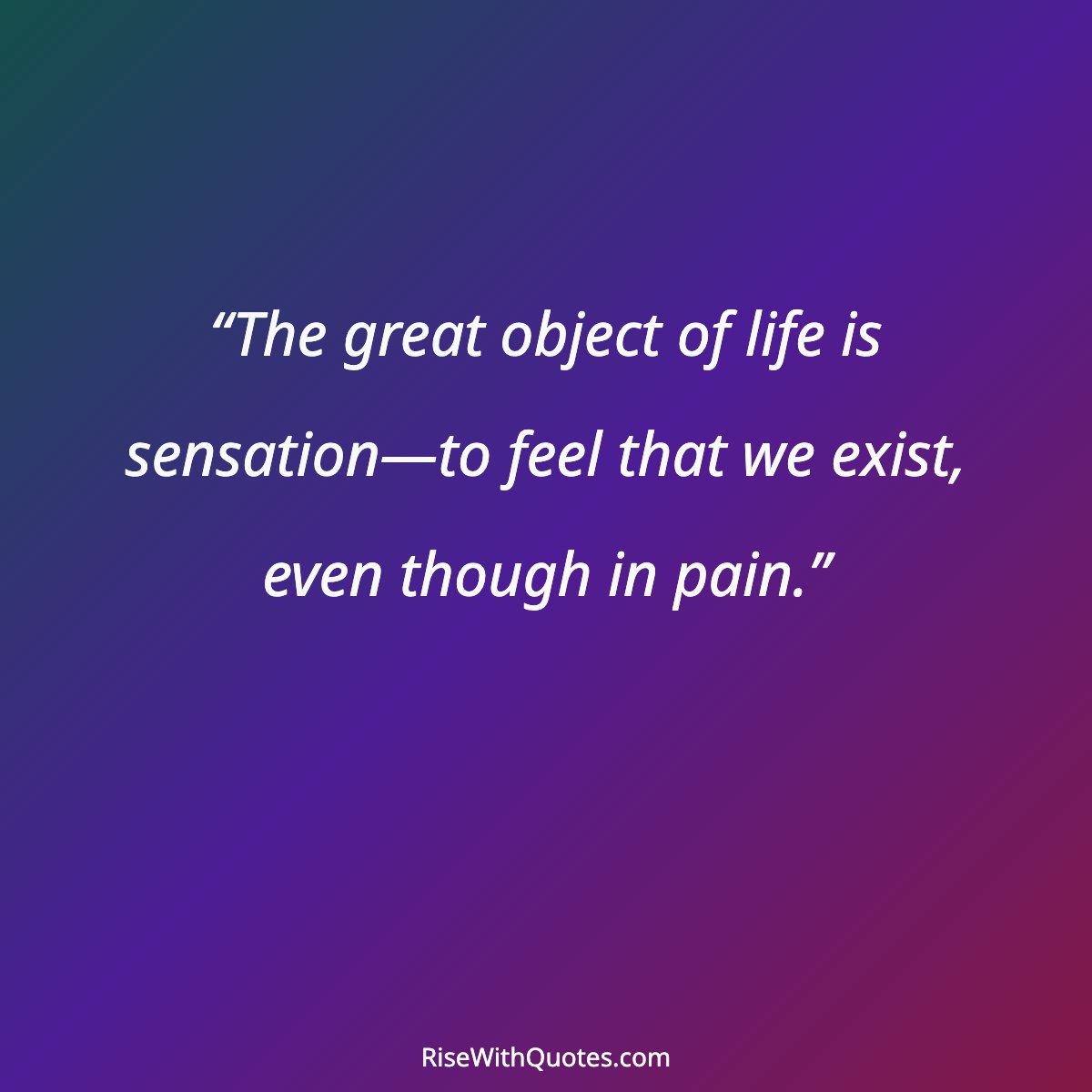 “The great object of life is sensation—to feel that we exist, even though in pain.”