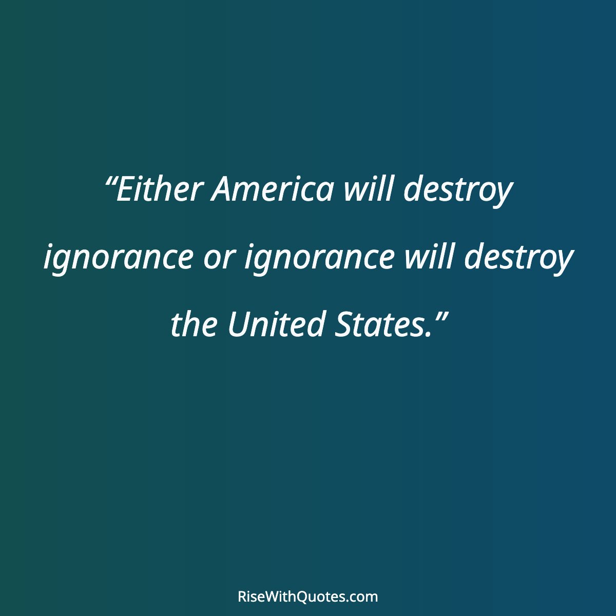 “Either America will destroy ignorance or ignorance will destroy the United States.”