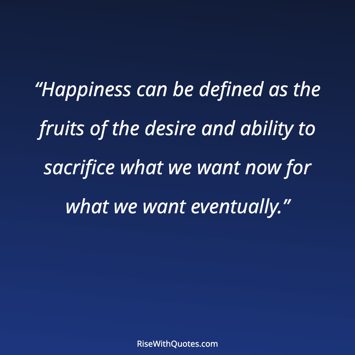 “Happiness can be defined as the fruits of the desire and ability to sacrifice what we want now for what we want eventually.”