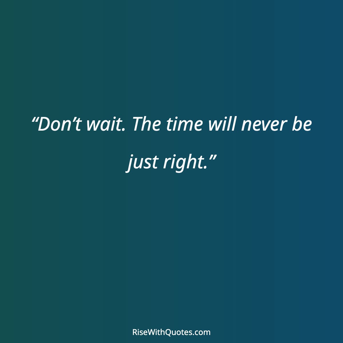 “Don’t wait. The time will never be just right.”
