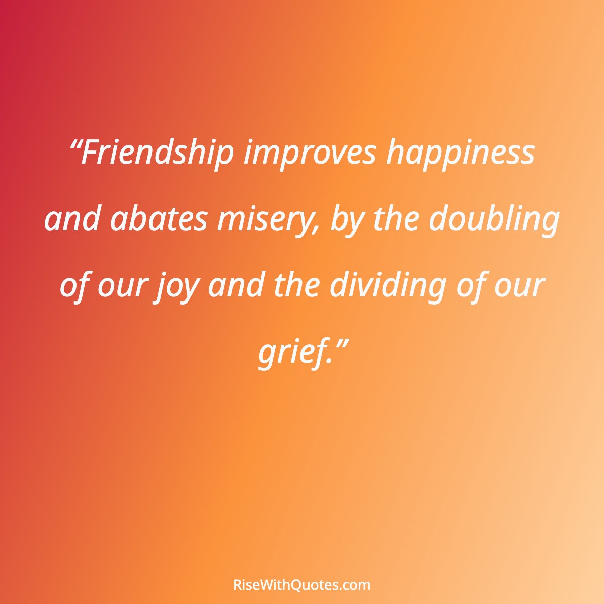 “Friendship improves happiness and abates misery, by the doubling of our joy and the dividing of our grief.”