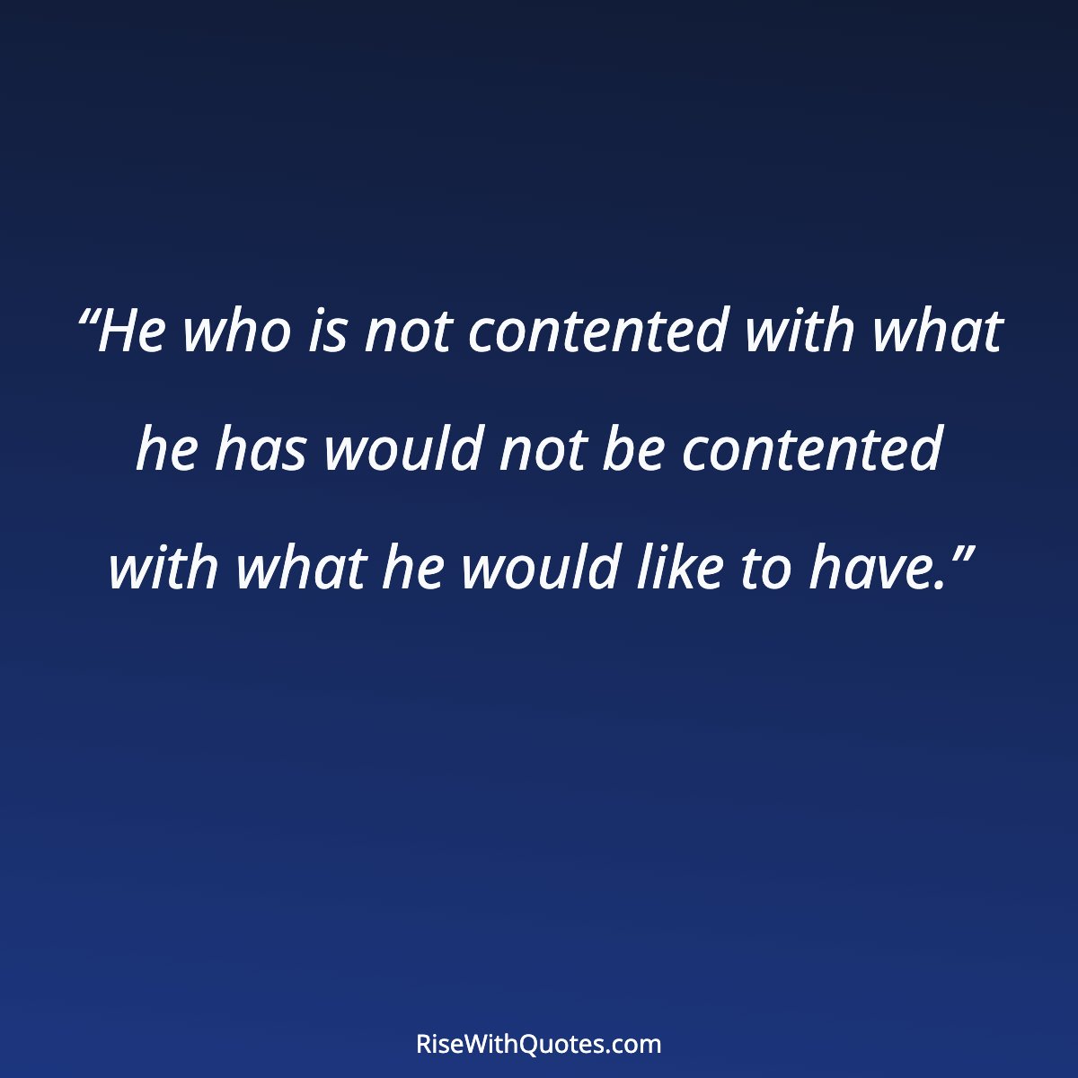 “He who is not contented with what he has would not be contented with what he would like to have.”