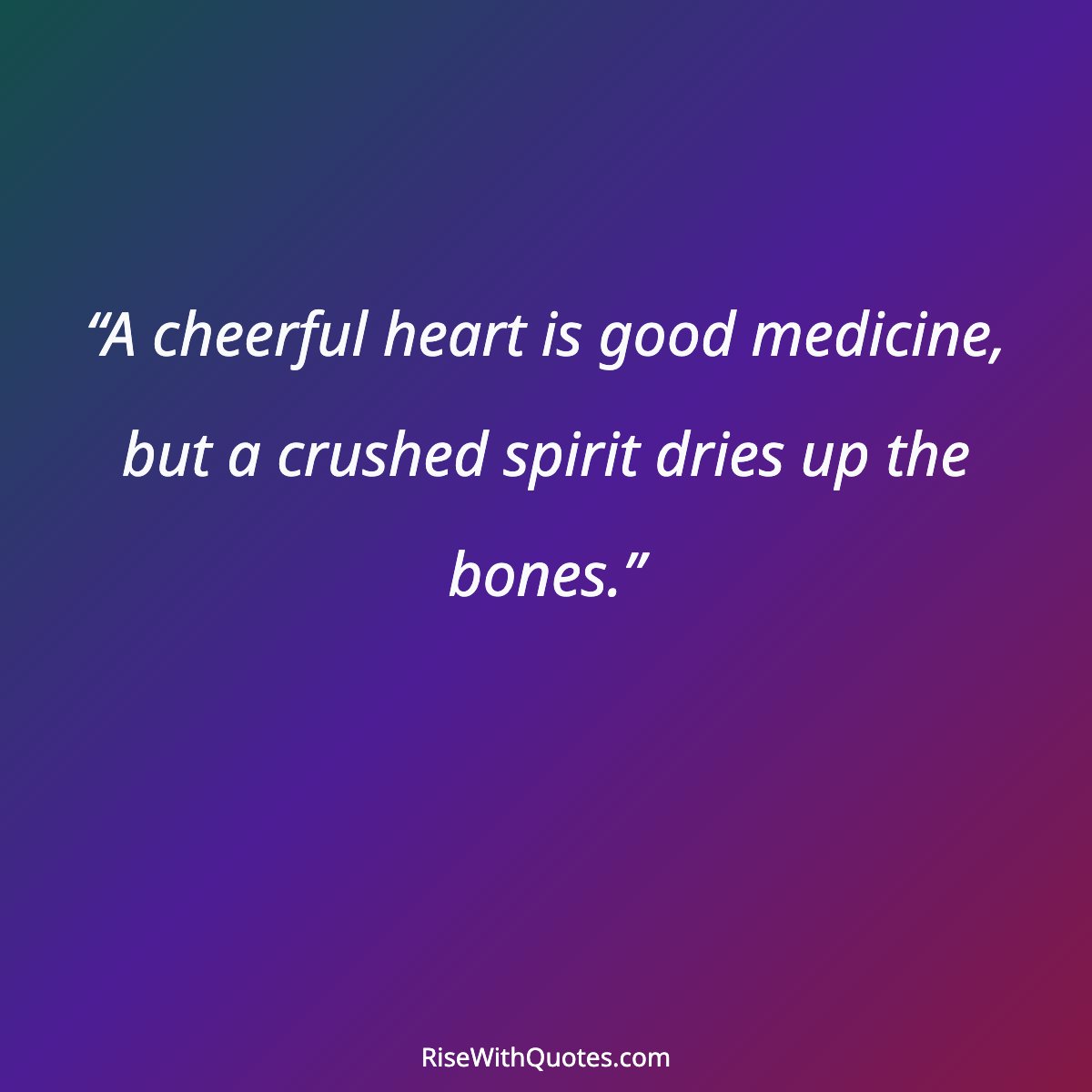 “A cheerful heart is good medicine, but a crushed spirit dries up the bones.”