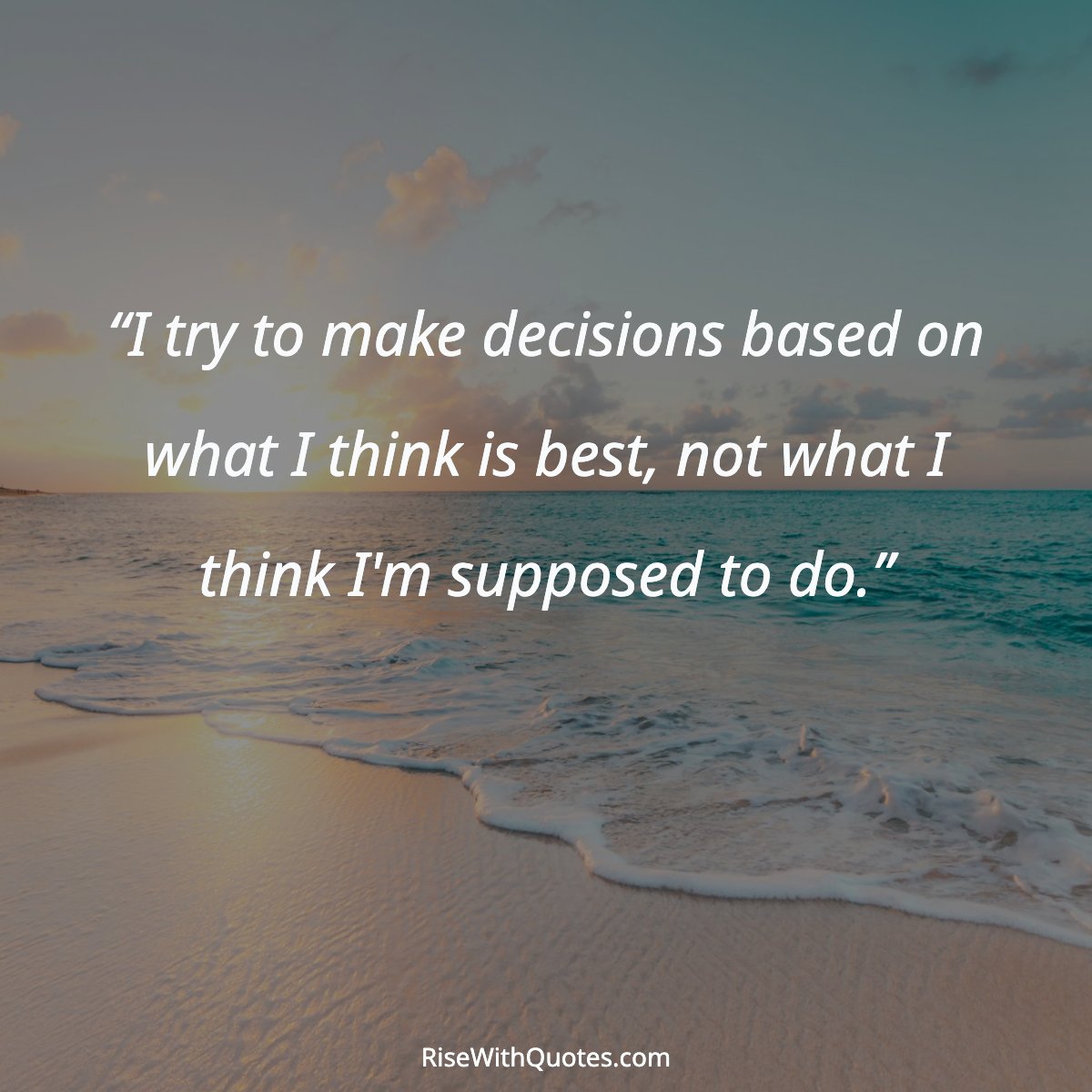 “I try to make decisions based on what I think is best, not what I think I'm supposed to do.”