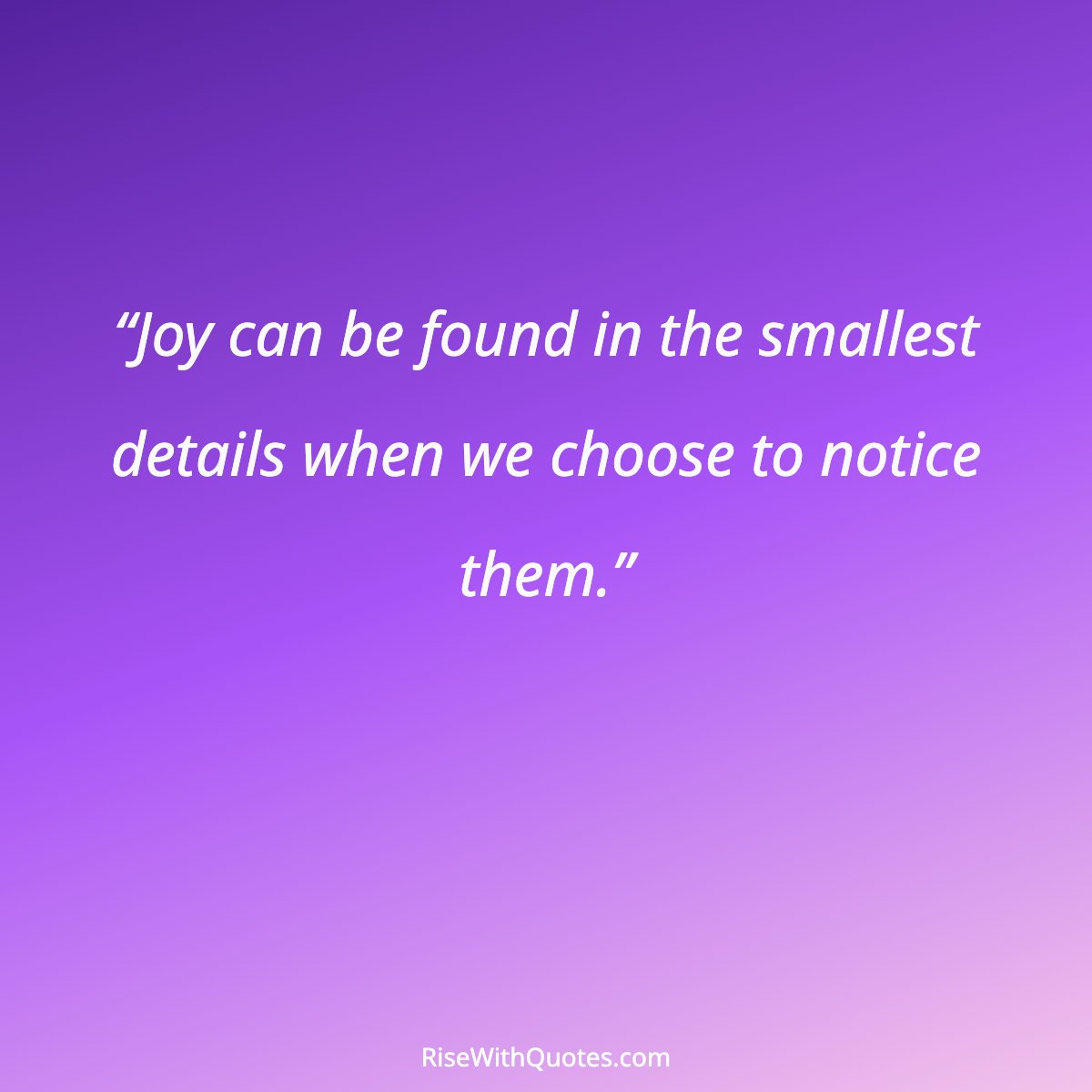 Joy is a deep sense of happiness that comes from within. It is not dependent on external circumstances but on how we perceive and experience life. These joy quotes encourage you to find happiness in simple moments and appreciate what you have. Whether it is spending time with loved ones or achieving personal milestones, joy can be found everywhere. These quotes will help you develop a positive mindset and live a more fulfilling and happy life.