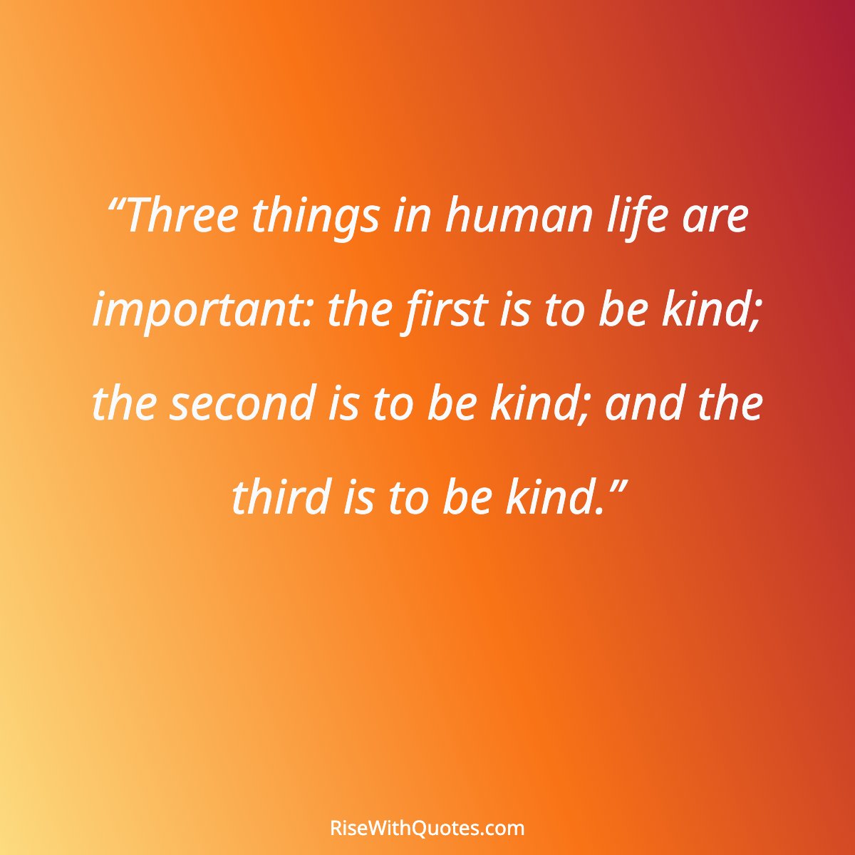 “Three things in human life are important: the first is to be kind; the second is to be kind; and the third is to be kind.”