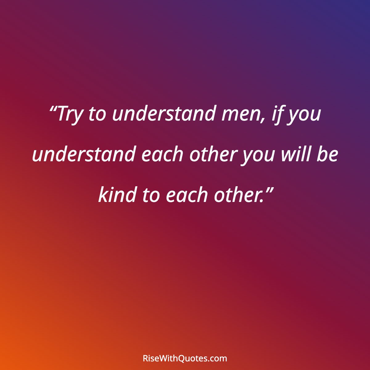 “Try to understand men, if you understand each other you will be kind to each other.”