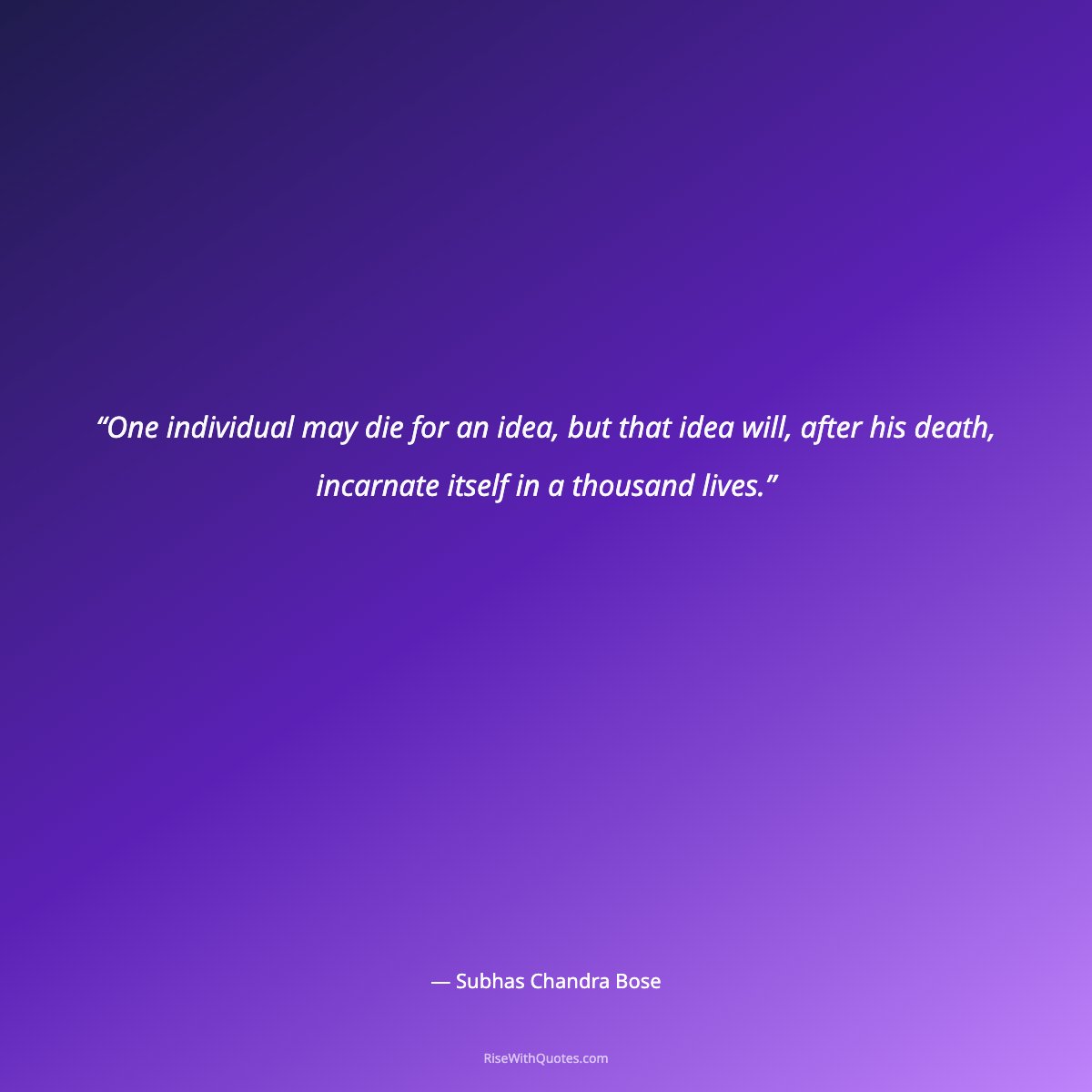 “One individual may die for an idea, but that idea will, after his death, incarnate itself in a thousand lives.”