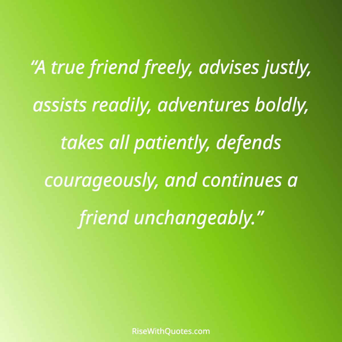 “A true friend freely, advises justly, assists readily, adventures boldly, takes all patiently, defends courageously, and continues a friend unchangeably.”