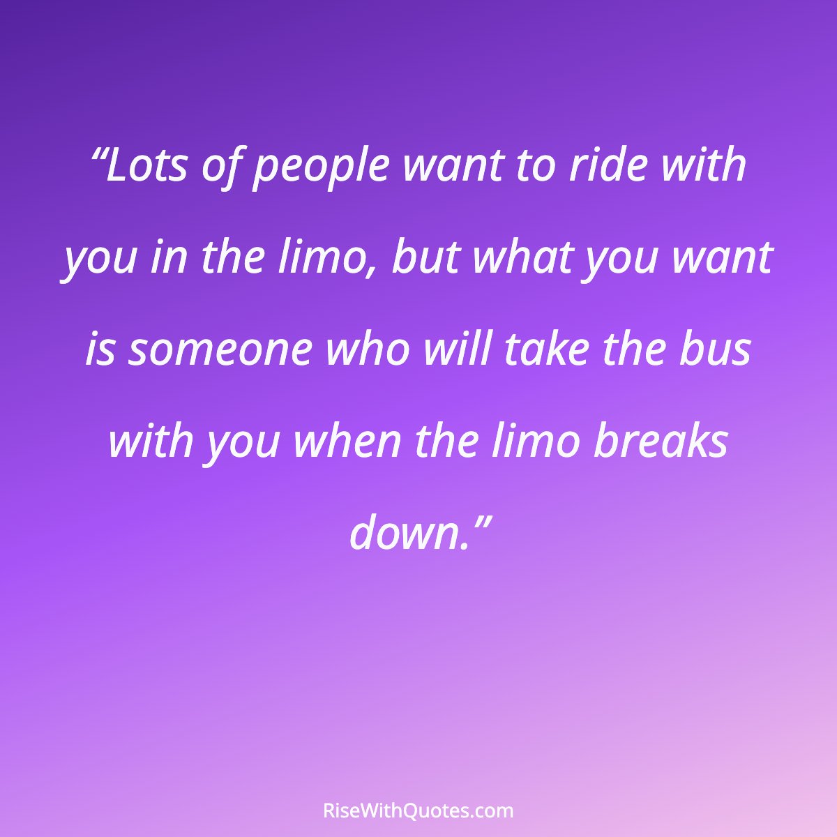 “Lots of people want to ride with you in the limo, but what you want is someone who will take the bus with you when the limo breaks down.”