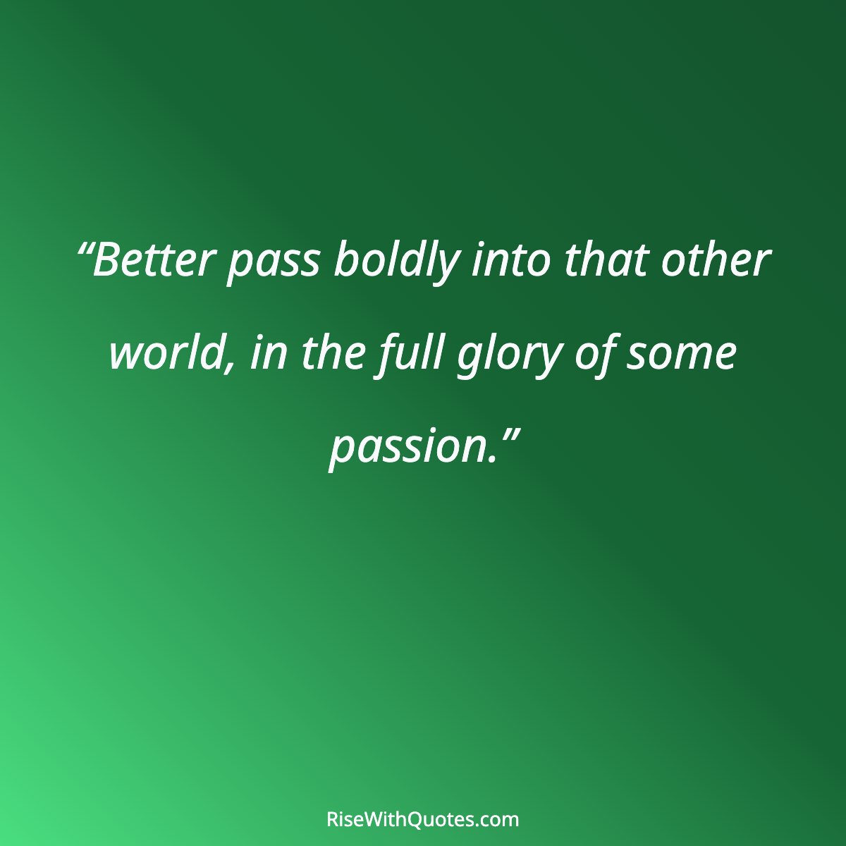 “Better pass boldly into that other world, in the full glory of some passion.”