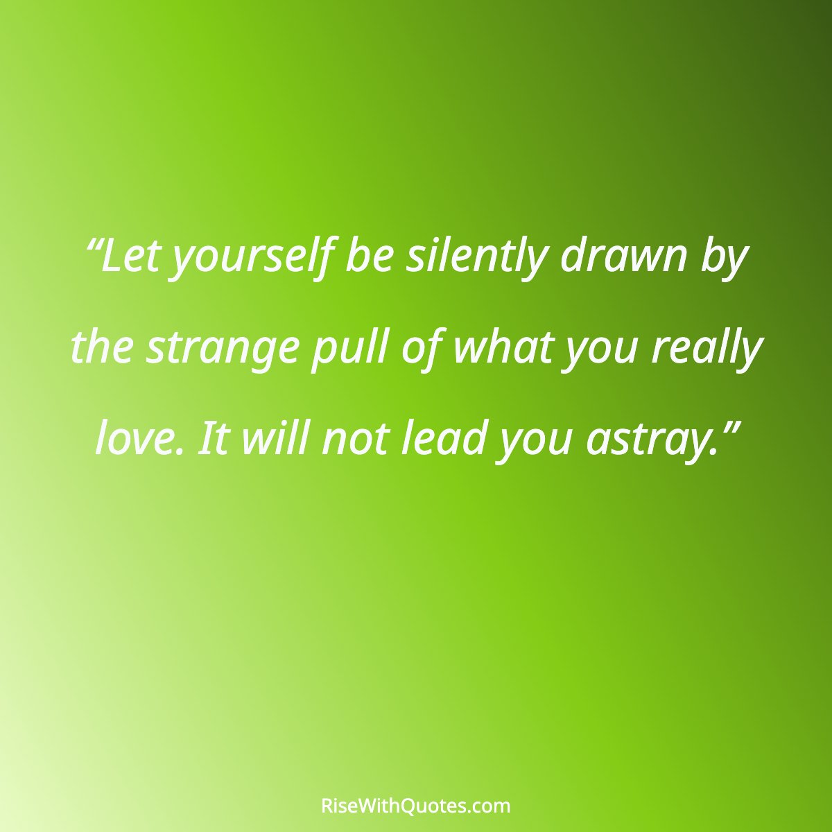 “Let yourself be silently drawn by the strange pull of what you really love. It will not lead you astray.”