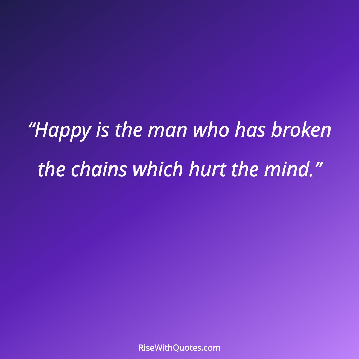 “Happy is the man who has broken the chains which hurt the mind.”