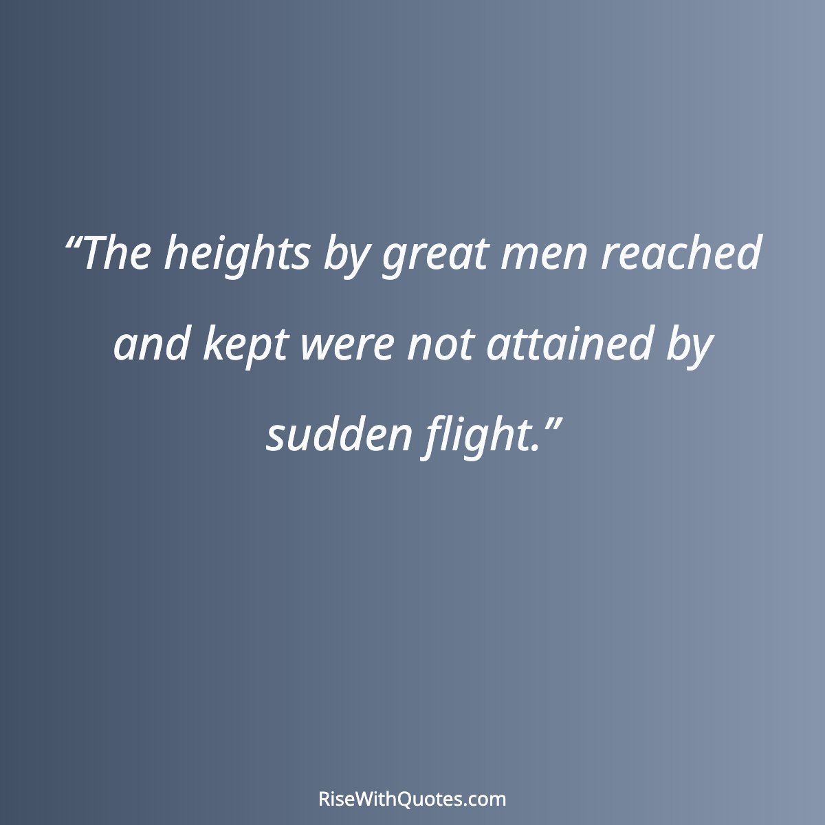 “The heights by great men reached and kept were not attained by sudden flight.”