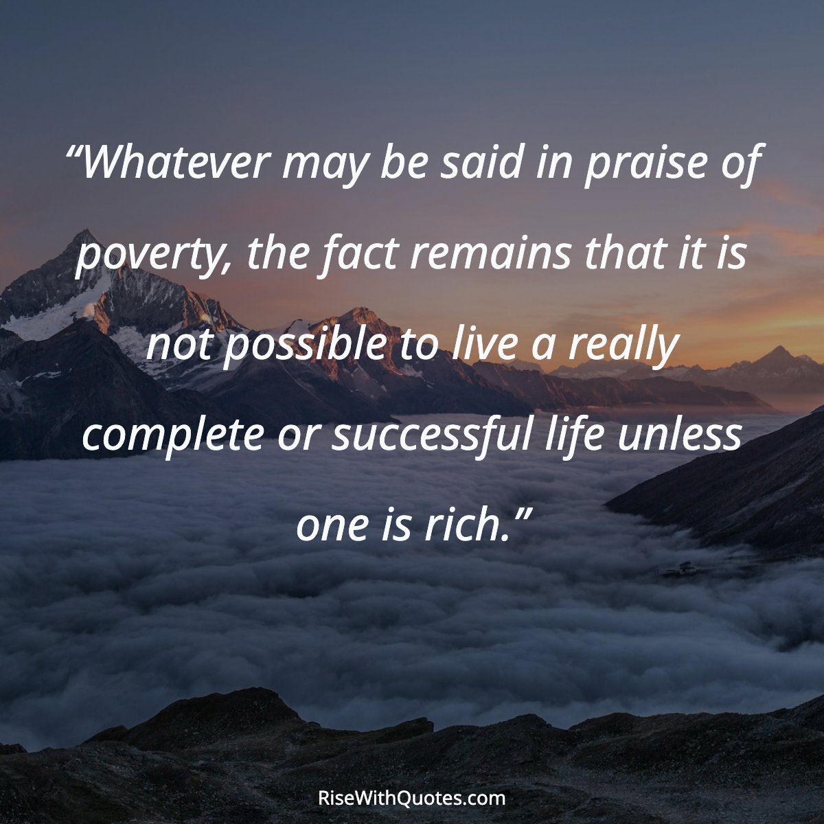 “Whatever may be said in praise of poverty, the fact remains that it is not possible to live a really complete or successful life unless one is rich.”