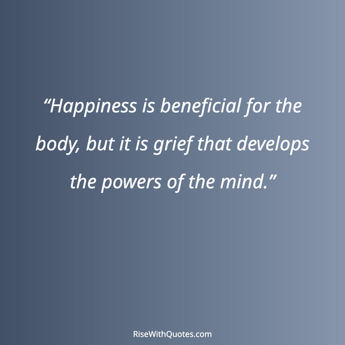 “Happiness is beneficial for the body, but it is grief that develops the powers of the mind.”