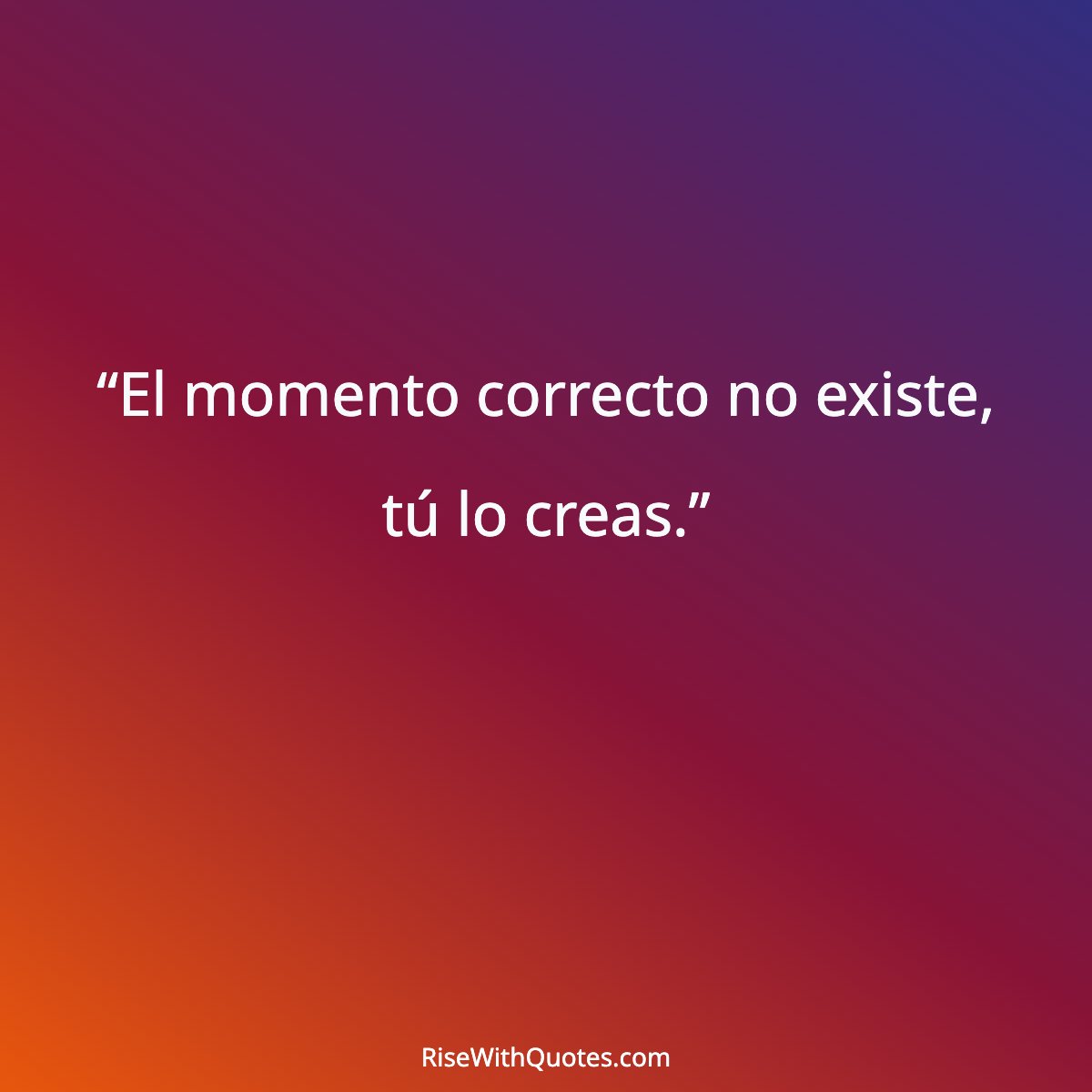 Meaning: Esperar condiciones perfectas puede retrasar el progreso. Esta frase enfatiza que el momento adecuado se construye con decisión y acción. -