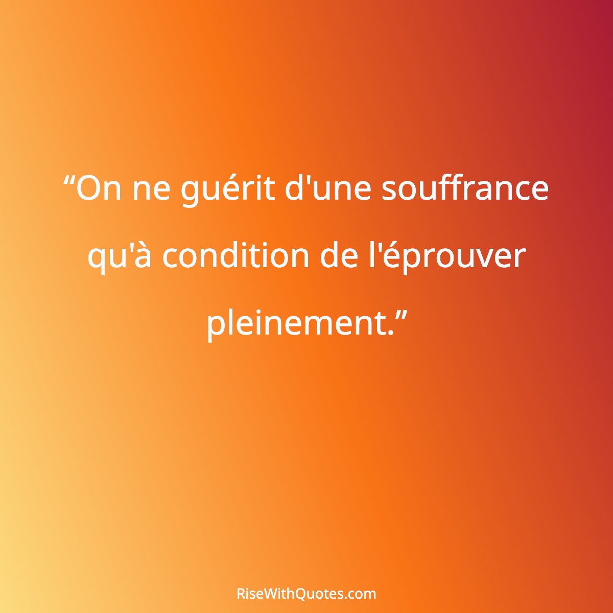“On ne guérit d'une souffrance qu'à condition de l'éprouver pleinement.”