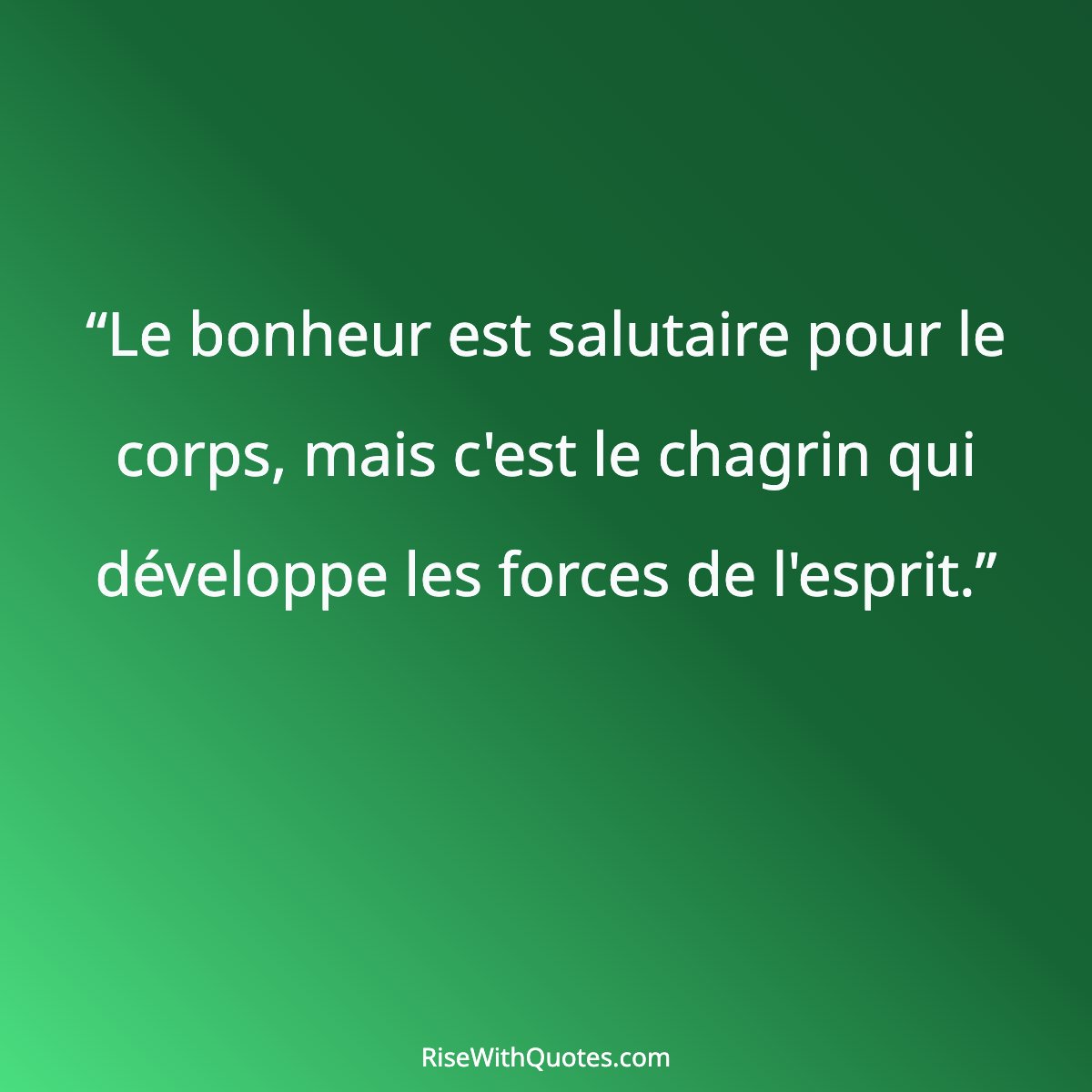“Le bonheur est salutaire pour le corps, mais c'est le chagrin qui développe les forces de l'esprit.”