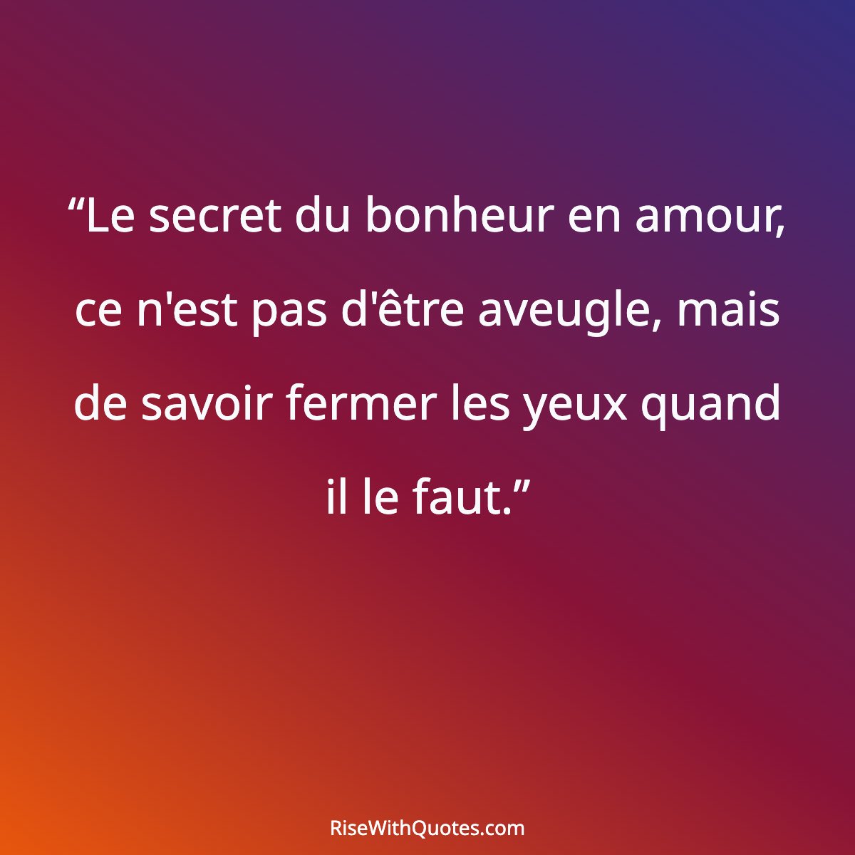 “Le secret du bonheur en amour, ce n'est pas d'être aveugle, mais de savoir fermer les yeux quand il le faut.”