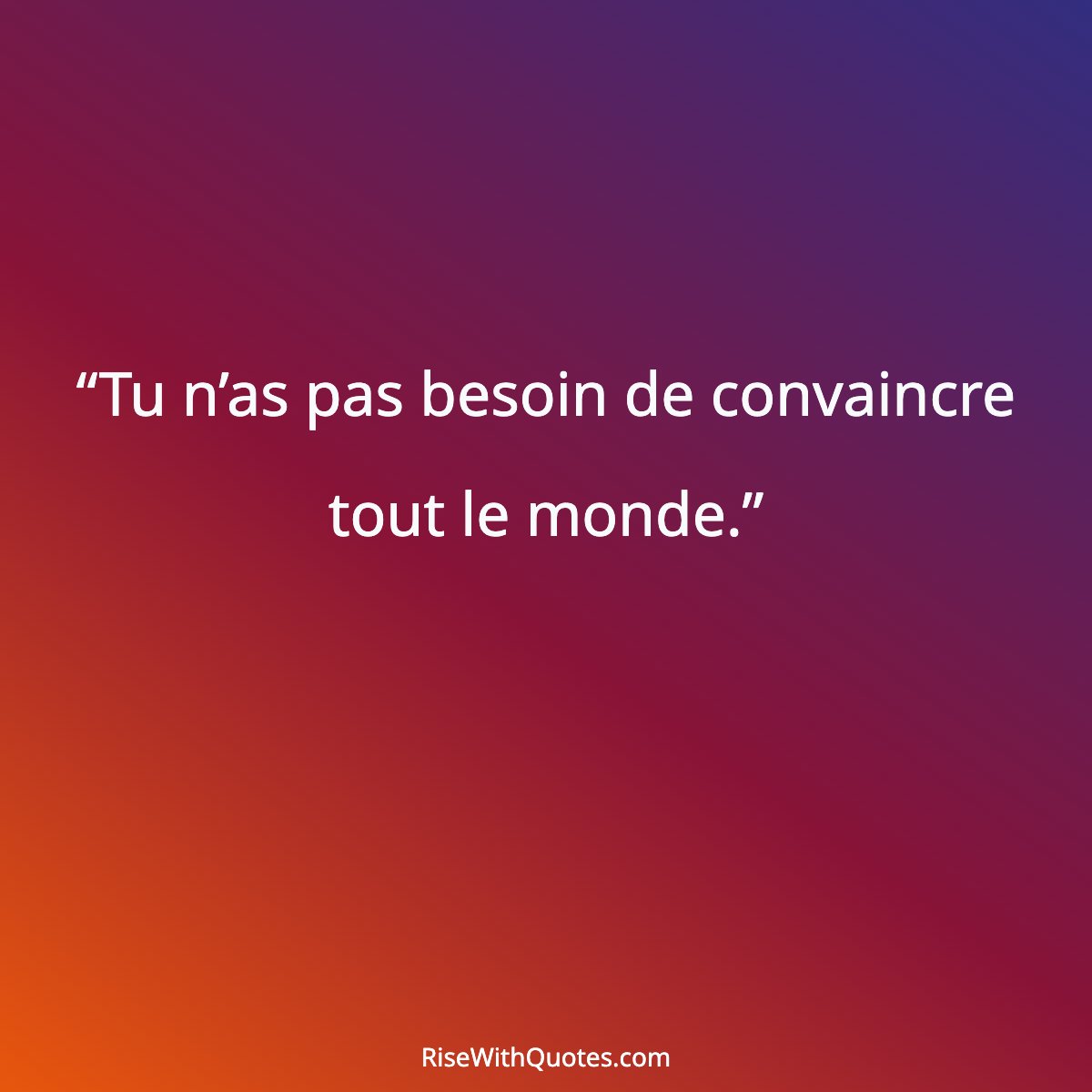 Meaning: Chercher à être compris ou approuvé par tous est épuisant. Cette phrase rappelle que rester fidèle à soi-même est plus important que plaire à tout le monde. -